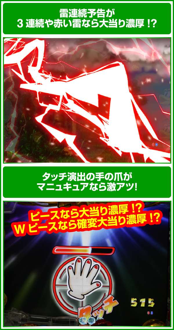 雷連続予告は赤い雷、ウリボウ予告ではウリボウが巨大なら大当り濃厚!?