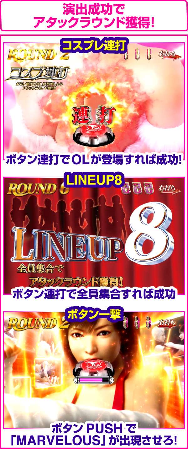 ボタンのアイコンにも注目で、一撃の文字とともに巨大なボタンが出現すれば激アツ!!
