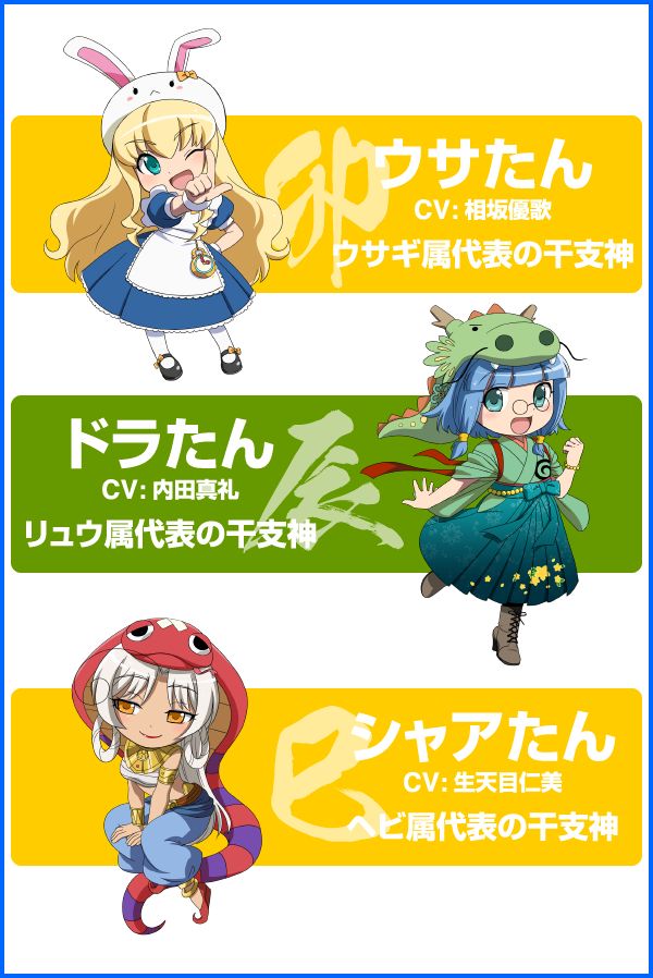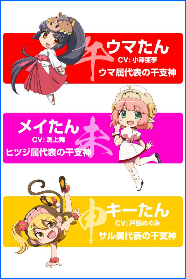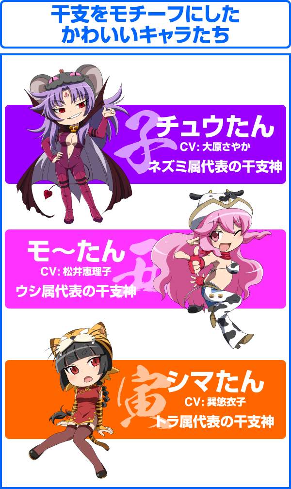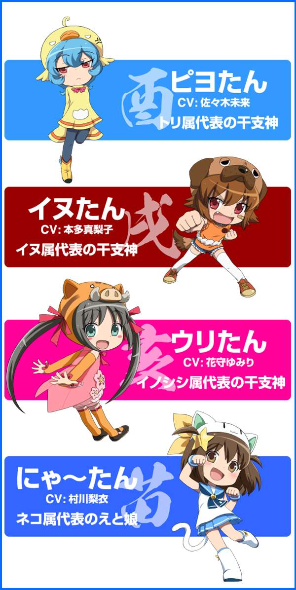 干支をモチーフにした、かわいいキャラクターが大活躍。ちなみにメインとなるキャラはにゃ〜たんだ!
