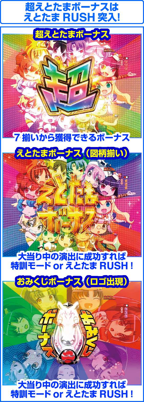 えとたまボーナスとおみくじボーナスはラウンド中の演出に注目。演出に成功すれば特訓モードorえとたまRUSHに突入するぞ!