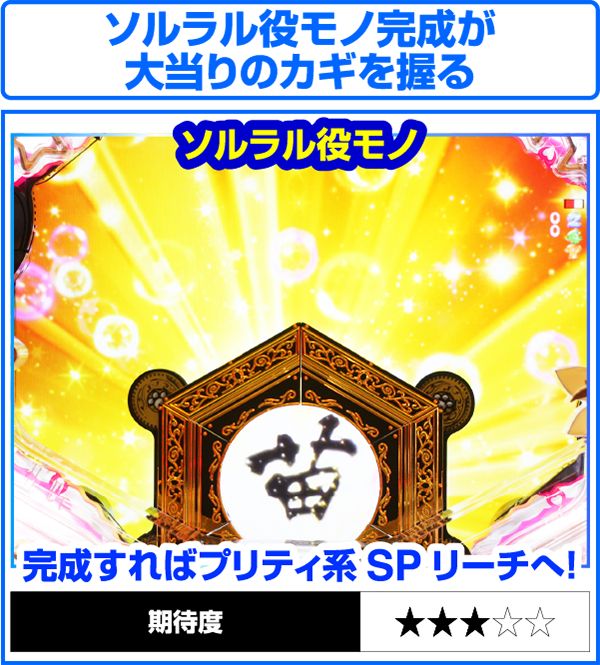 SPリーチ発展演出時はソルラル役モノが完成すれば、プリティ系SPリーチに発展するぞ!