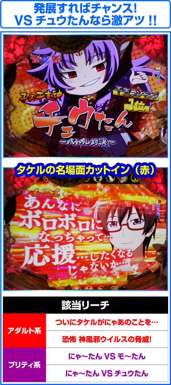 アダルト系は「ついにタケルが〜」と「恐怖 神風ウイルス〜」なら高期待度。そのほかのアダルト系は、ハズレ後のえとたまルーレット発展に期待しよう。
