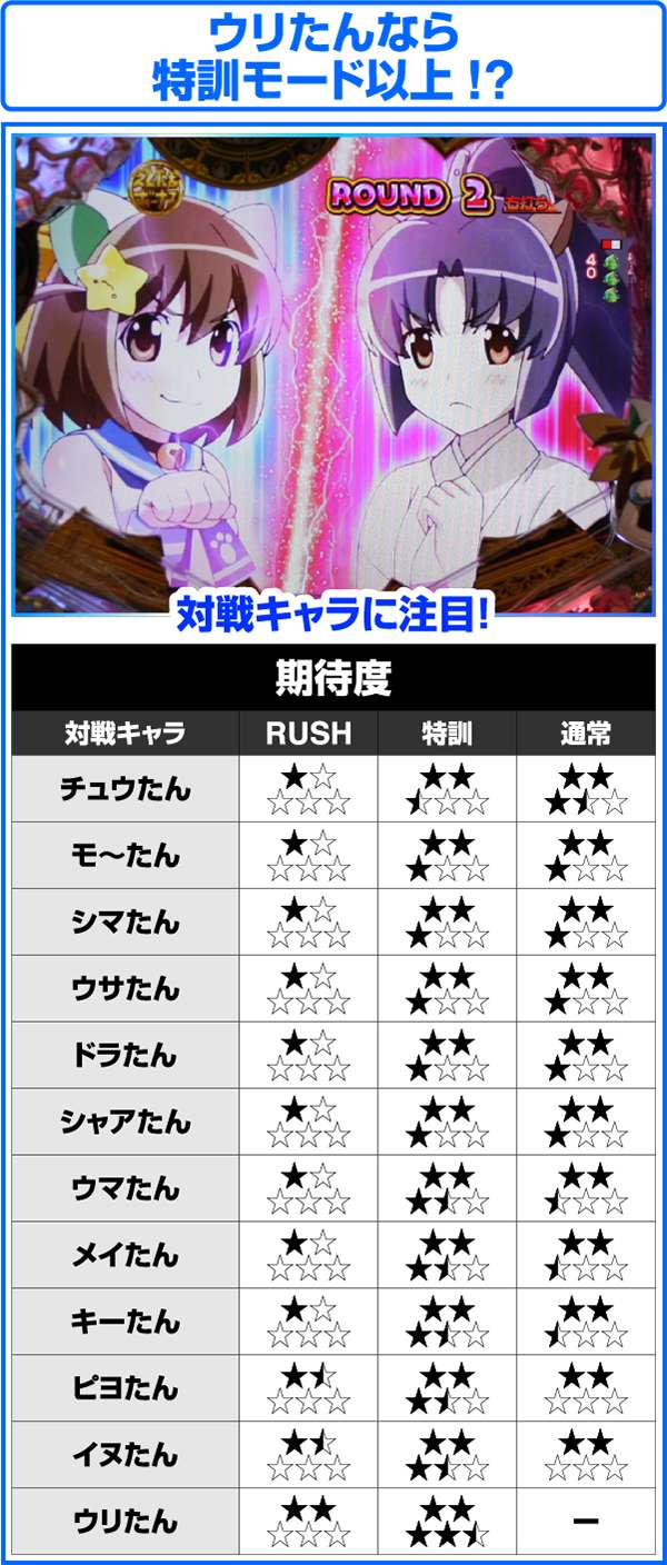 チュウたん以外なら特訓モード以上となる期待度は50%超。ウリたんは特訓モード以上が濃厚!
