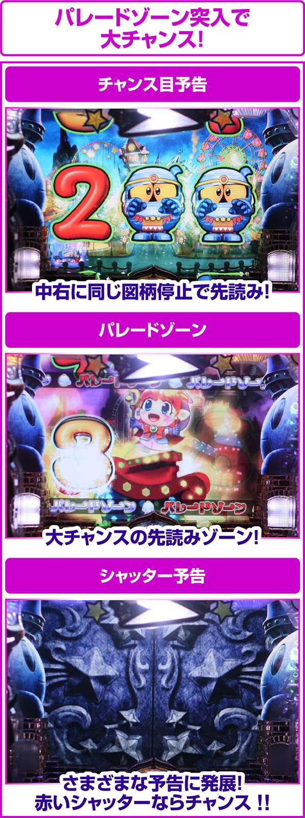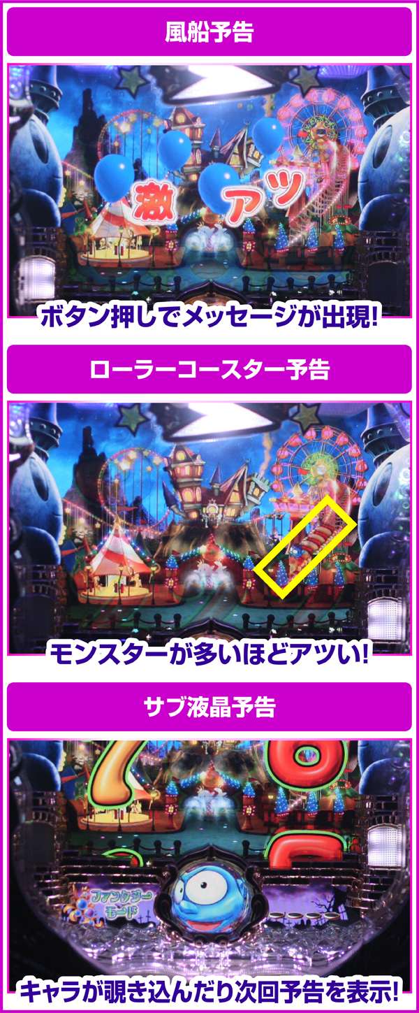 原点回帰をコンセプトにミニミニモンスターが復活! ゲーム性は初代を踏襲しており、新演出やパワーアップした演出が追加されている。スペックは大当り確率約1/126、確変は突入率60%かつ次回大当りまで電サポが継続するタイプ。 最大出玉は約1450個、最大時短回転数は100回転と、ライトミドルながら一撃性も兼ね備えている。 |