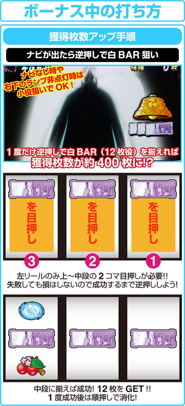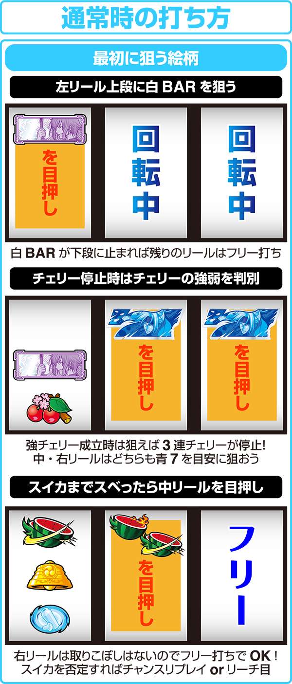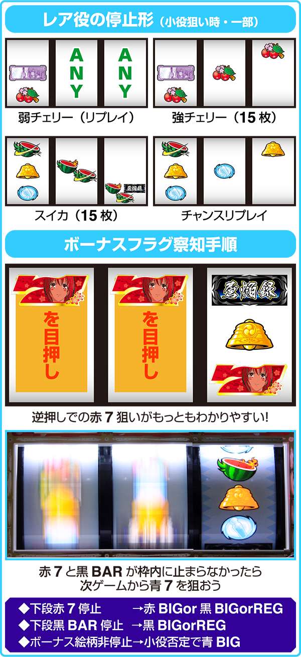 逆押しは青7BIG時にBARが枠下までスベるためフラグ判別がわかりやすいためオススメだ。