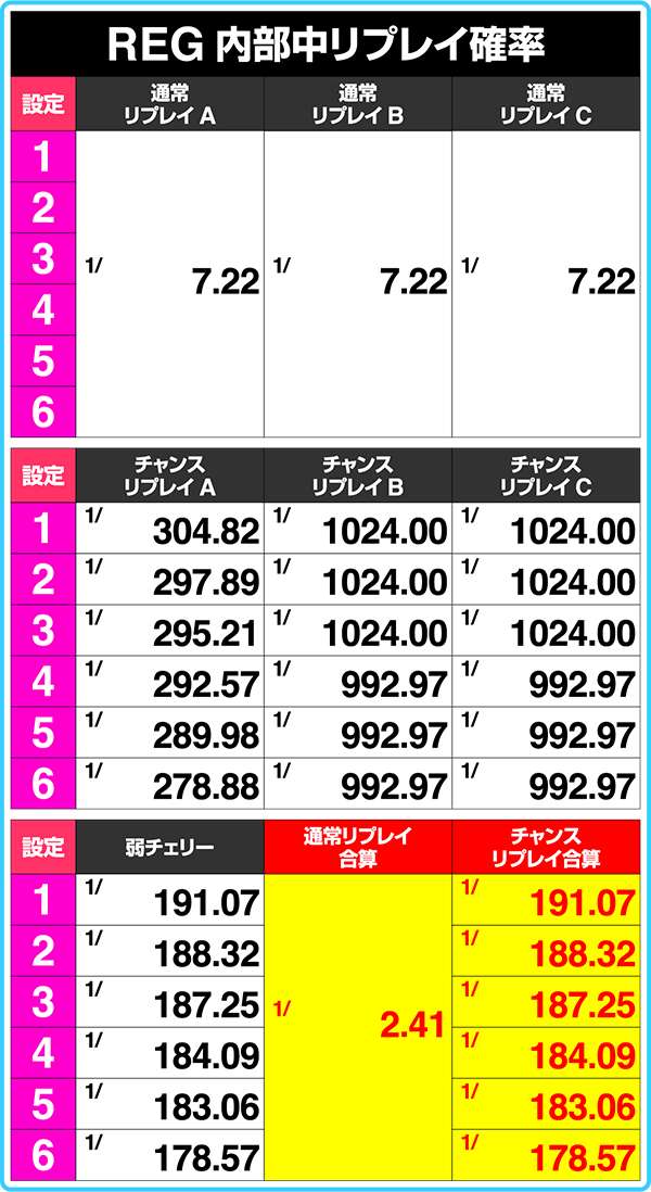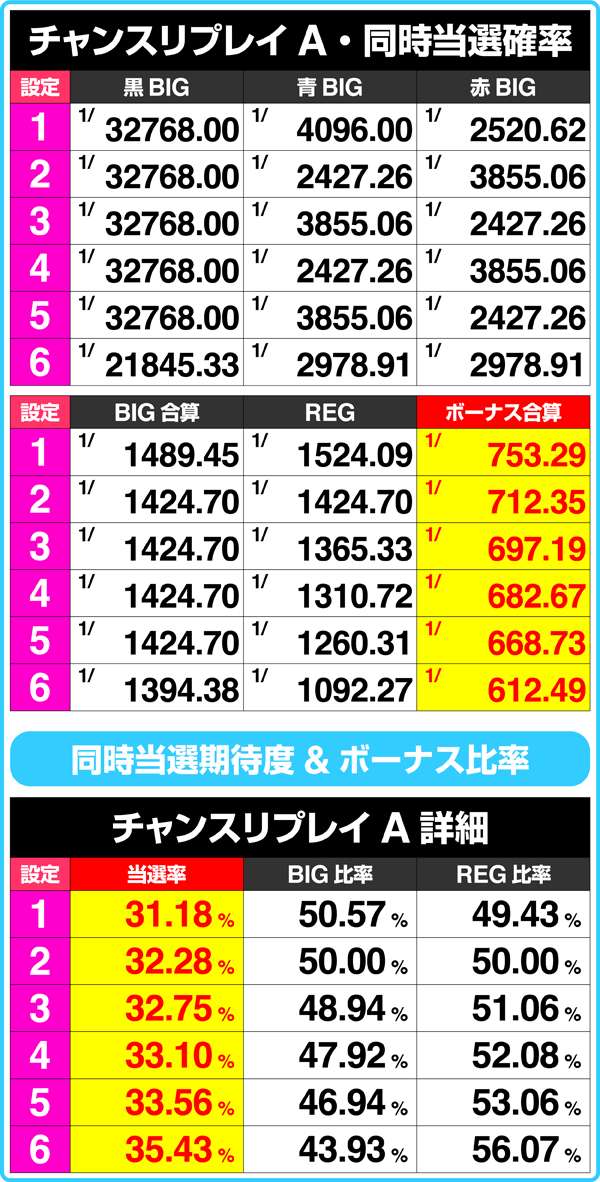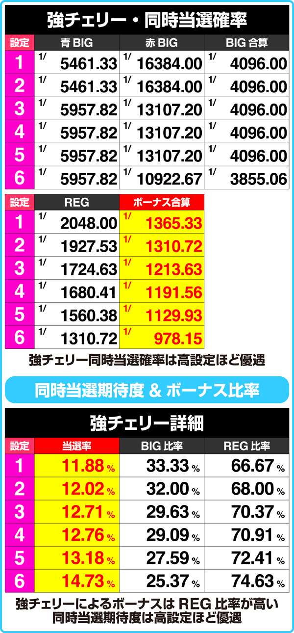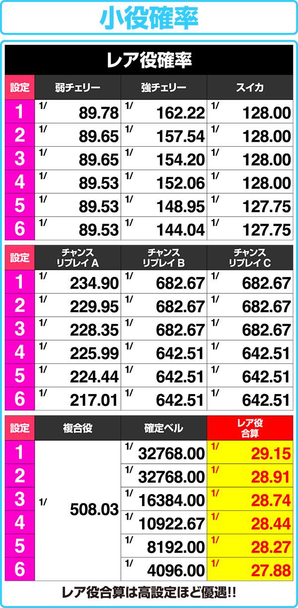 高設定ほどハズレの確率がアップしているため、単純に獲得枚数が減ったとガッカリする必要はない。