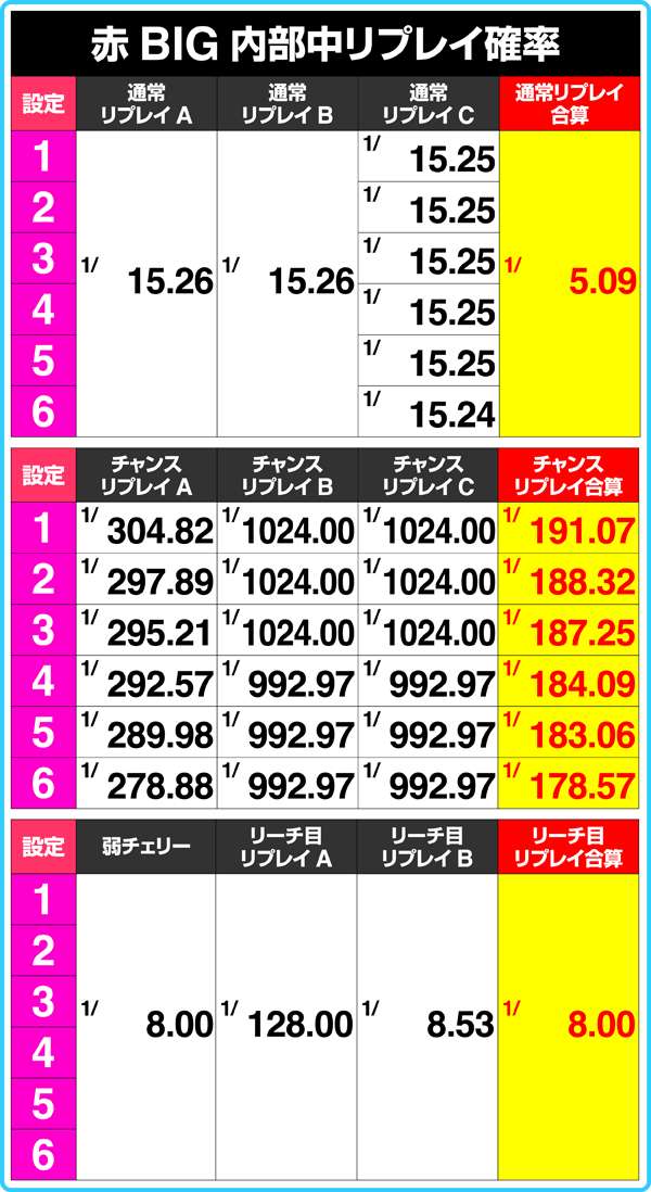 弱チェリーはリプレイだが、強チェリーは15枚の払い出しがあるため、払い出し枚数でも判別できる。