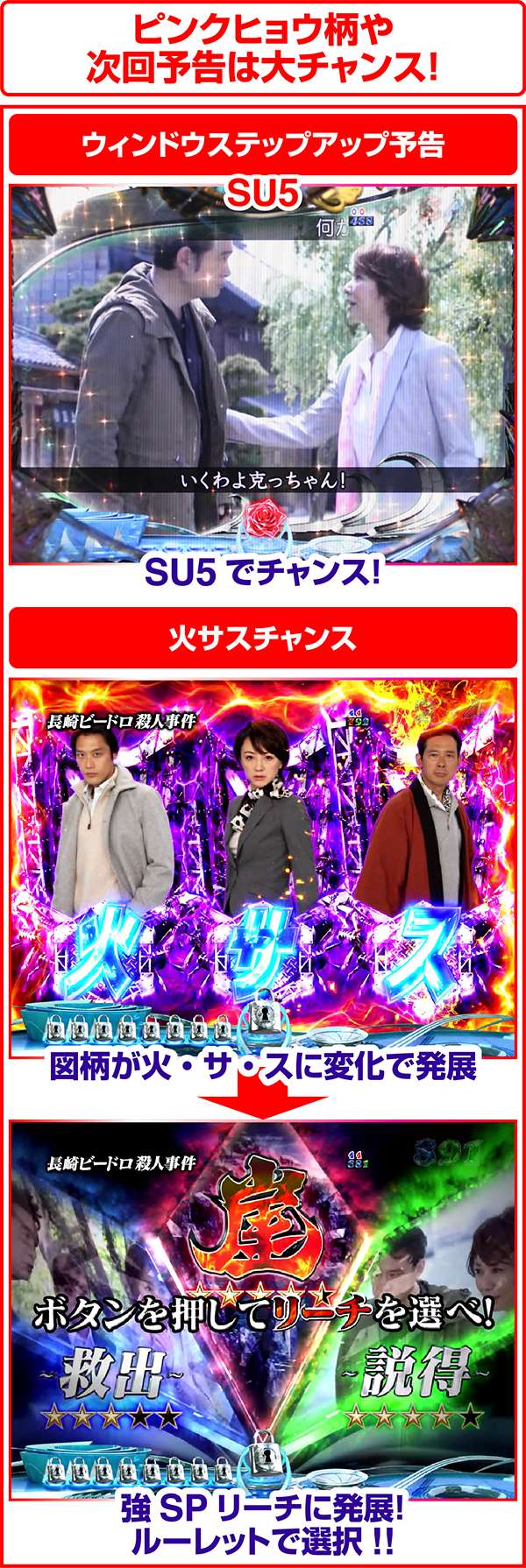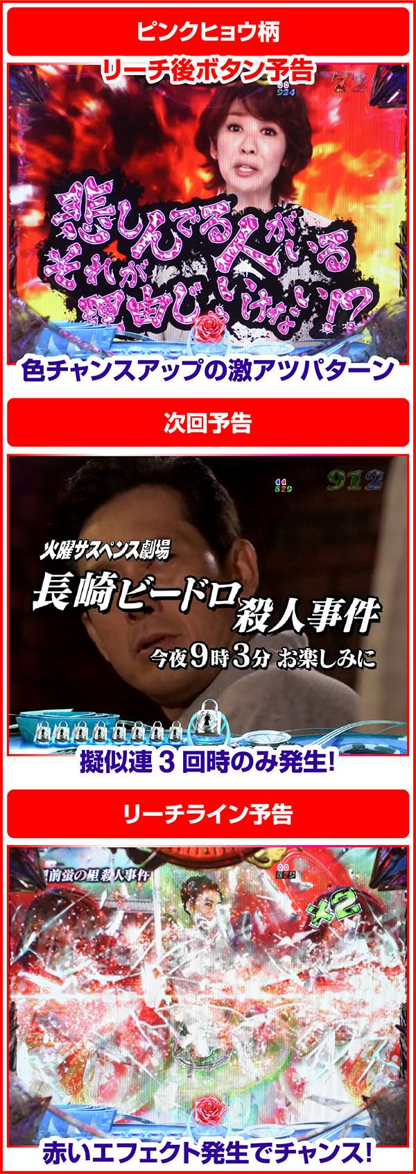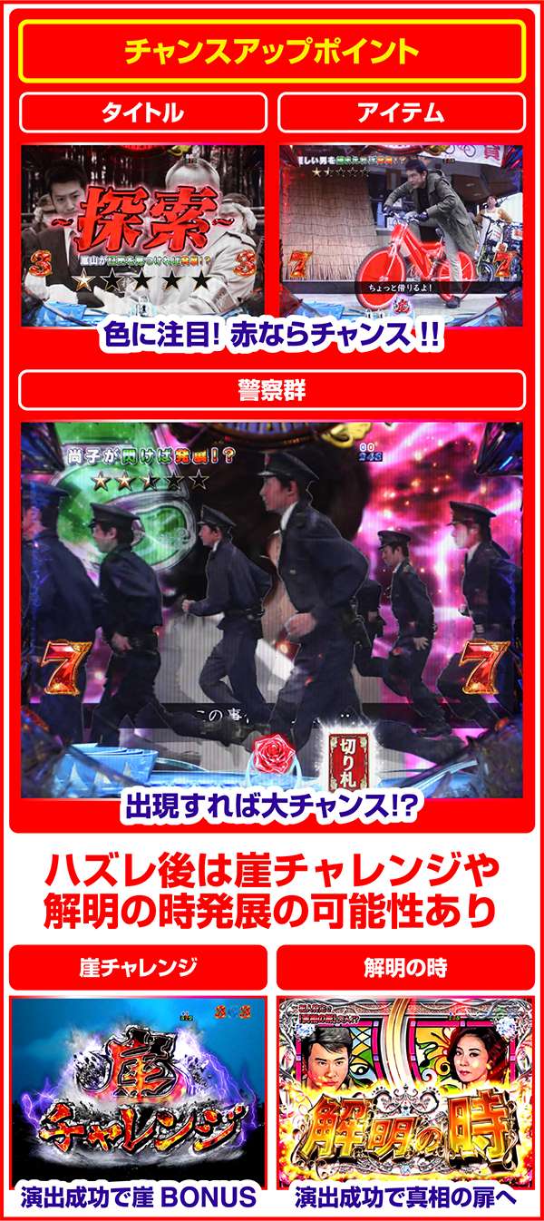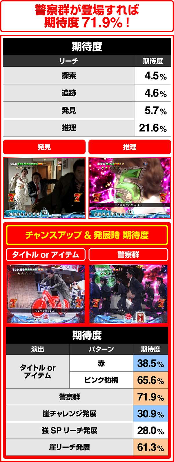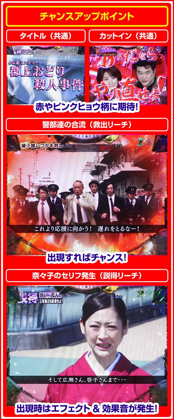 演出は確変中における真相の扉中のリーチが展開し、犯人を説得できれば大当りだ!