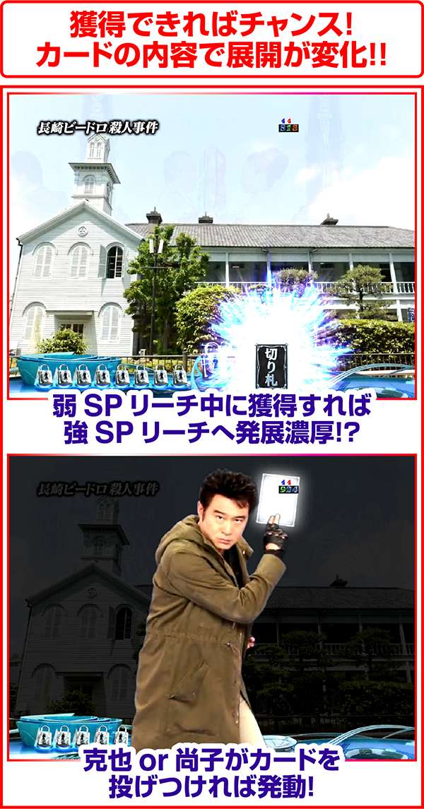 克也or尚子がカードを投げつければ発動となり、カードの内容によって展開が変化する。