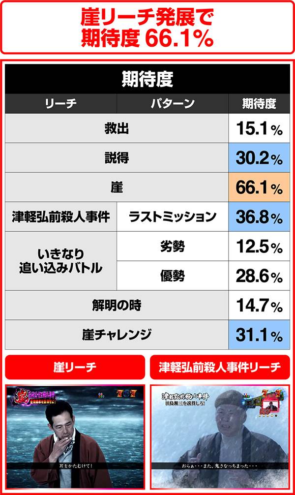 演出に成功すれば強SPリーチに発展。ハズレても崖チャレンジや解明の時に発展でチャンス!