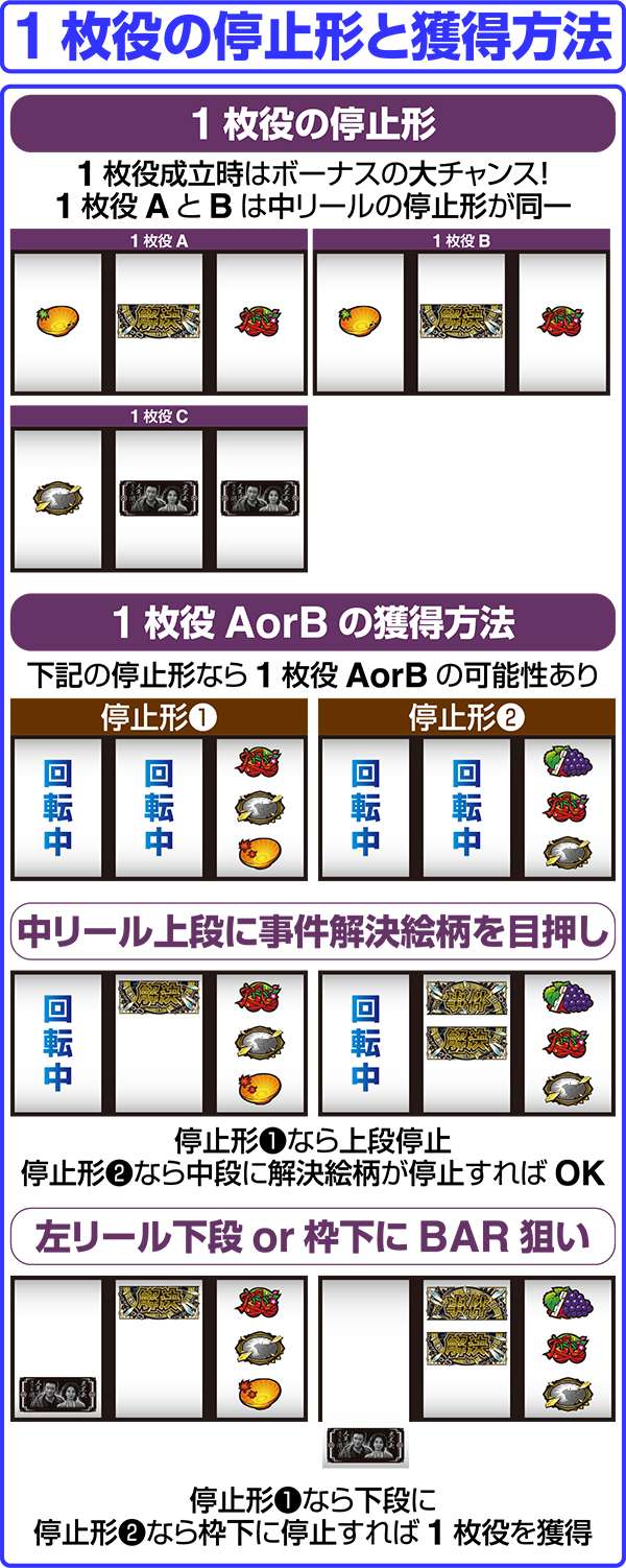 1枚役の停止形と獲得方法