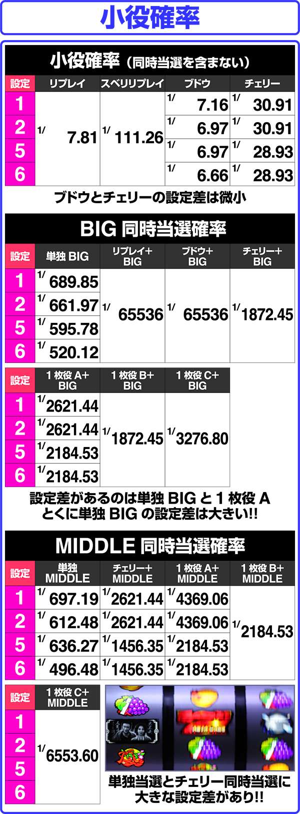 小役確率・ボーナス同時当選確率