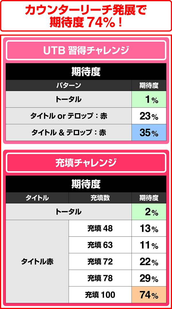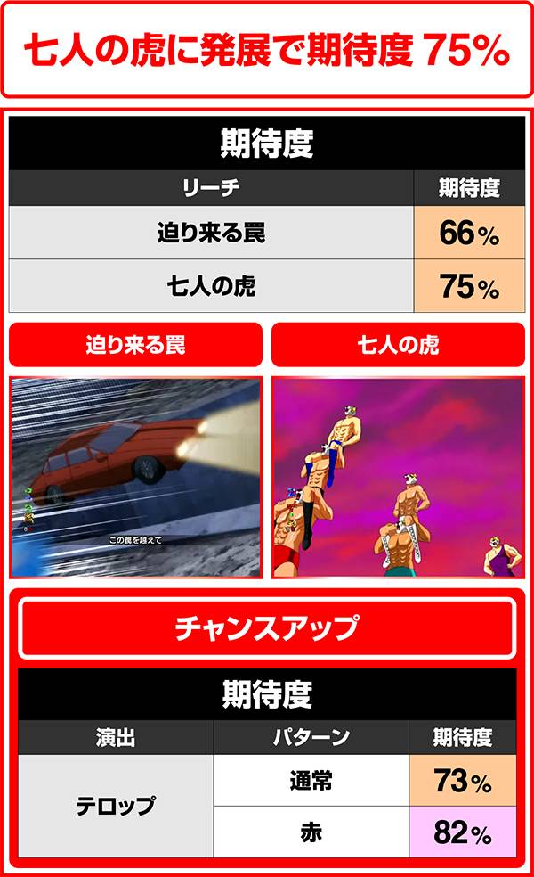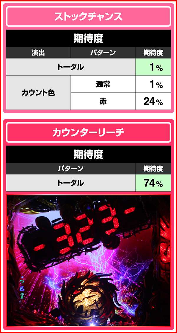 そのほかでは、強パターンへの発展とチャンスアップの有無が重要となる。