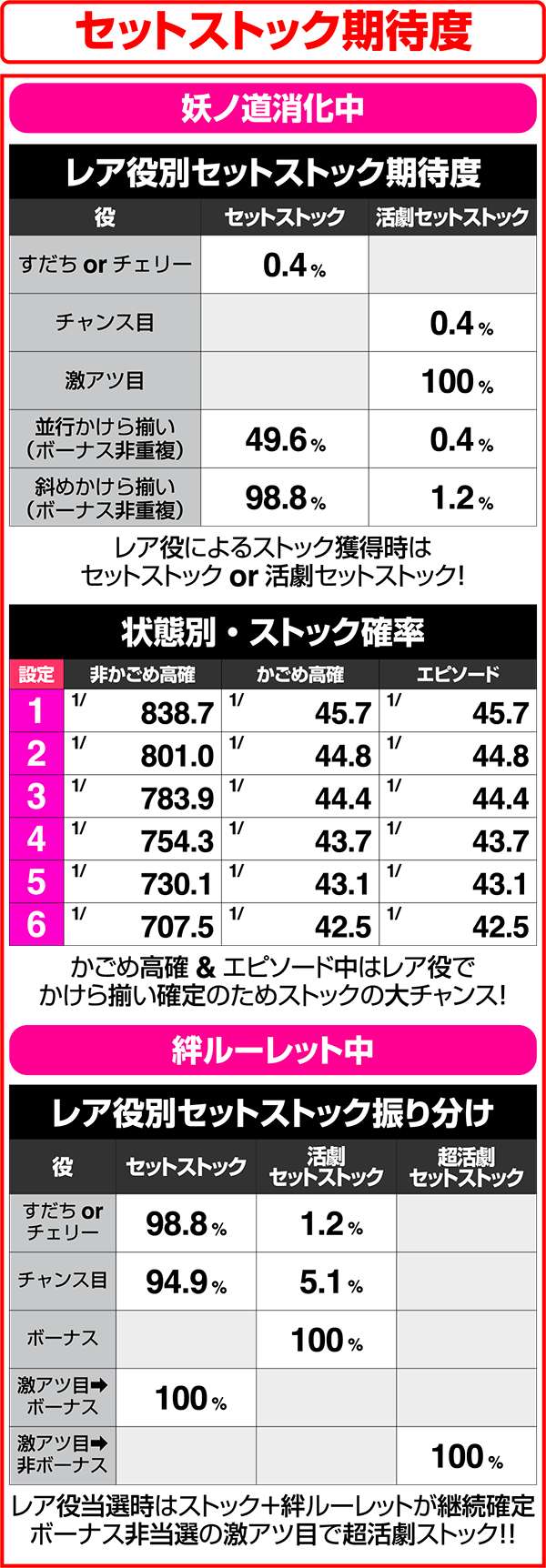 また、活劇タイム成功後に突入する絆ルーレットはボーナス経由だと突入はしないが、内部的に抽選はおこなわれている。