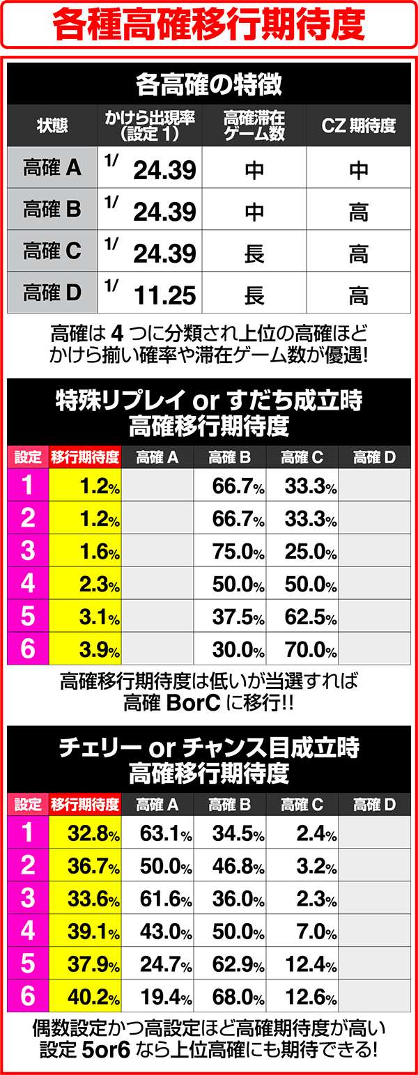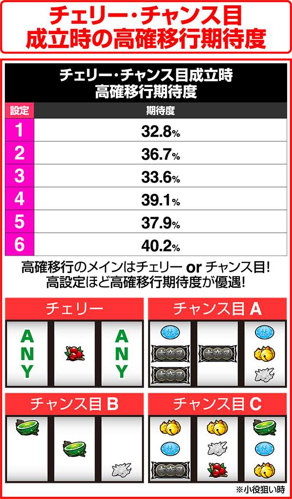チェリー・チャンス目成立時の高確移行期待度