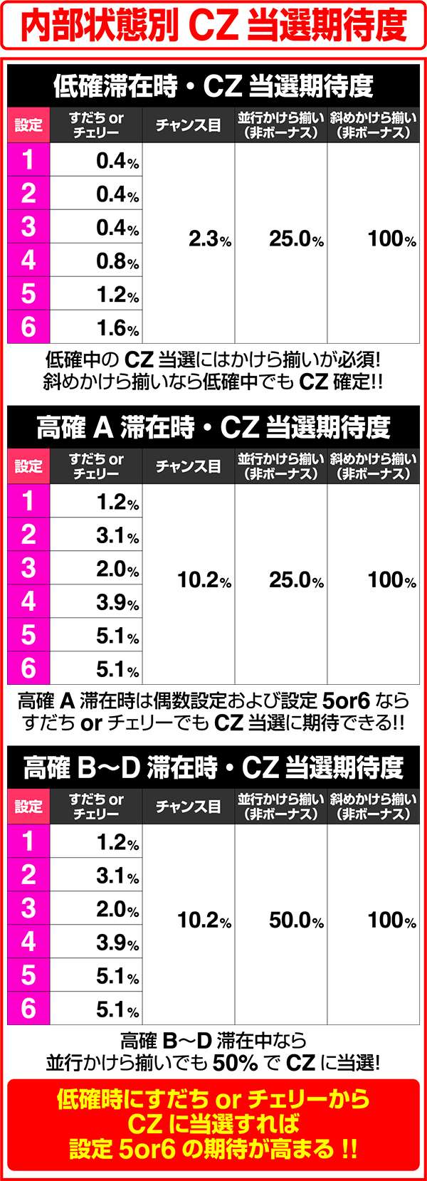 解析情報通常時 > 内部状態関連 > 各内部状態でのCZ当選期待度を更新しました