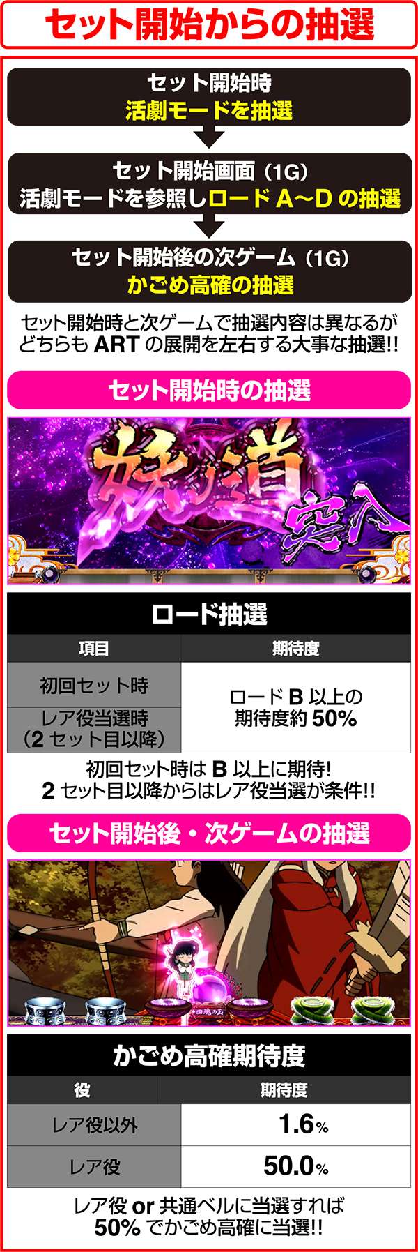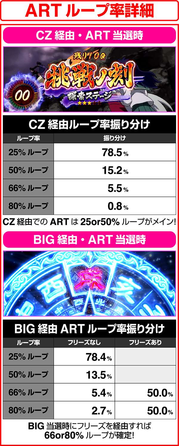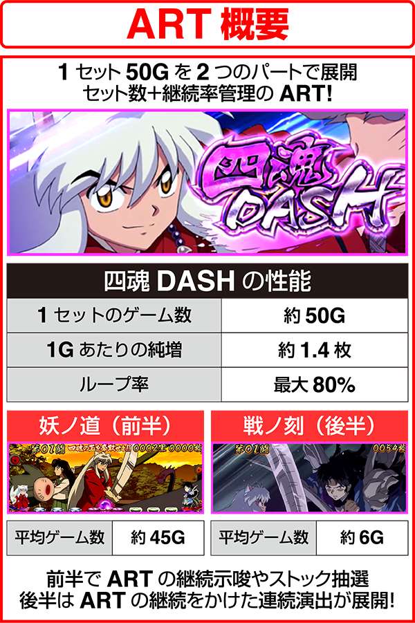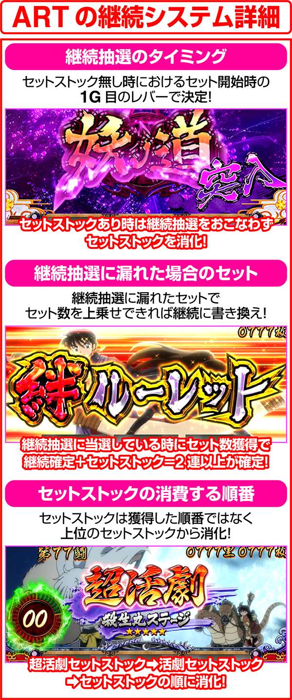 ARTは1セット約50Gで前後半の2パート。ARTのストックは前半の妖ノ道中におこない、ARTの継続をかけたバトルを後半の戦ノ刻中におこなう。