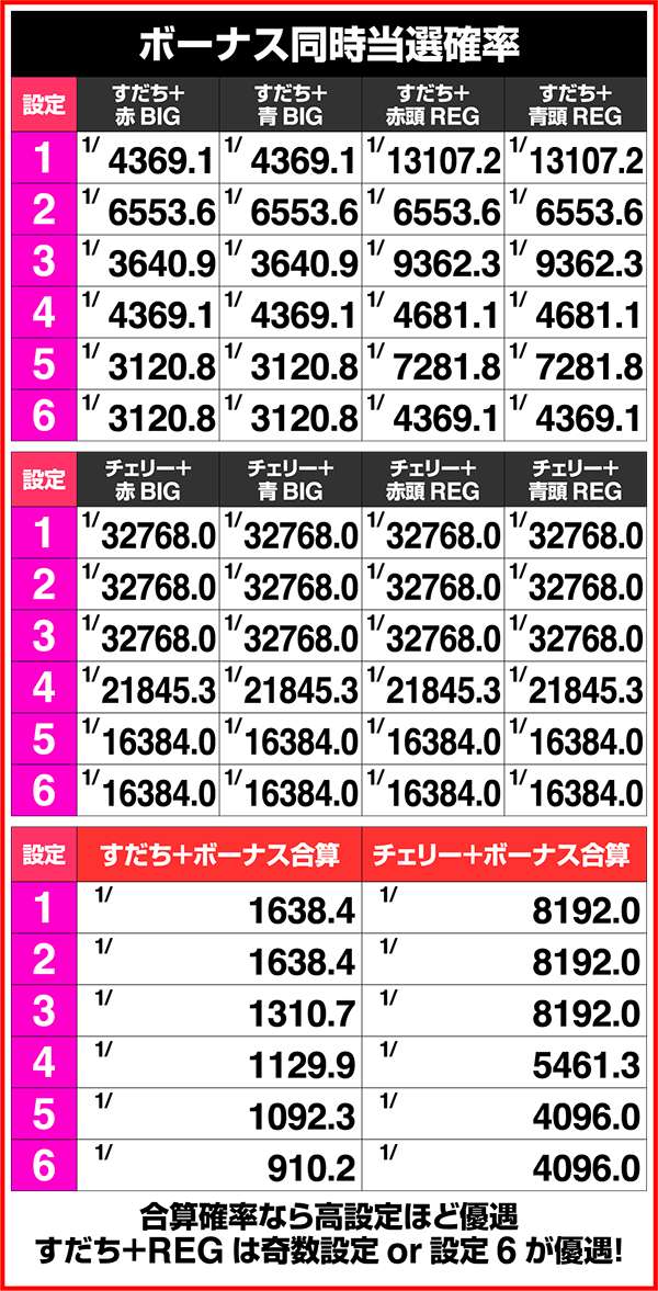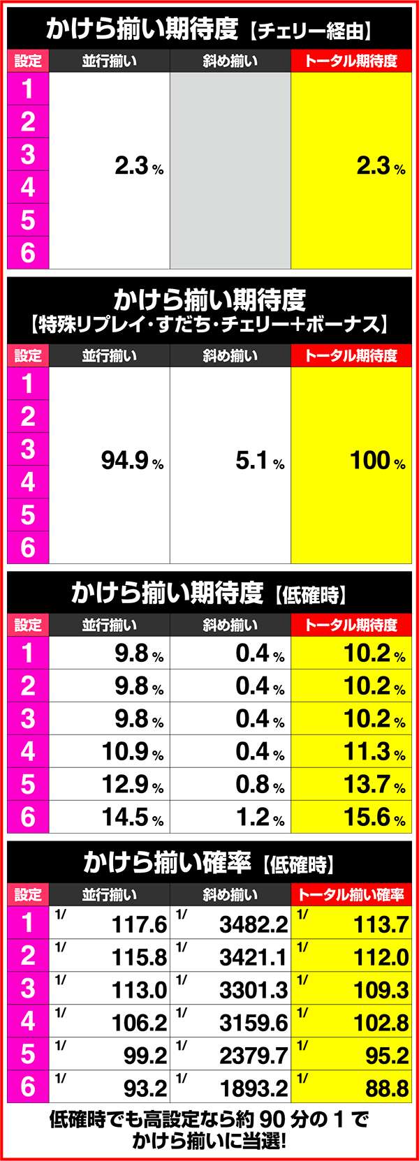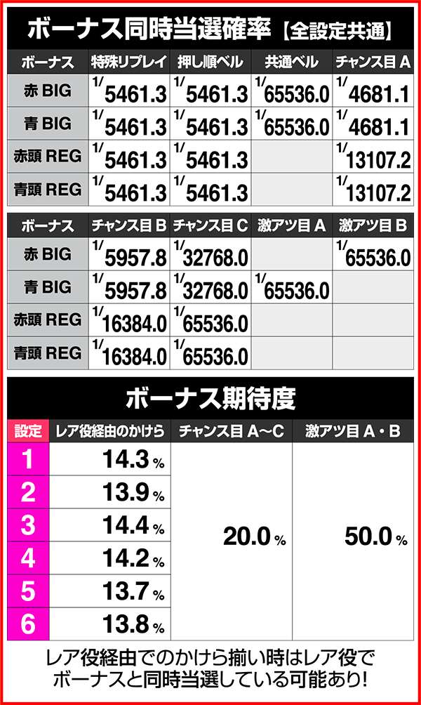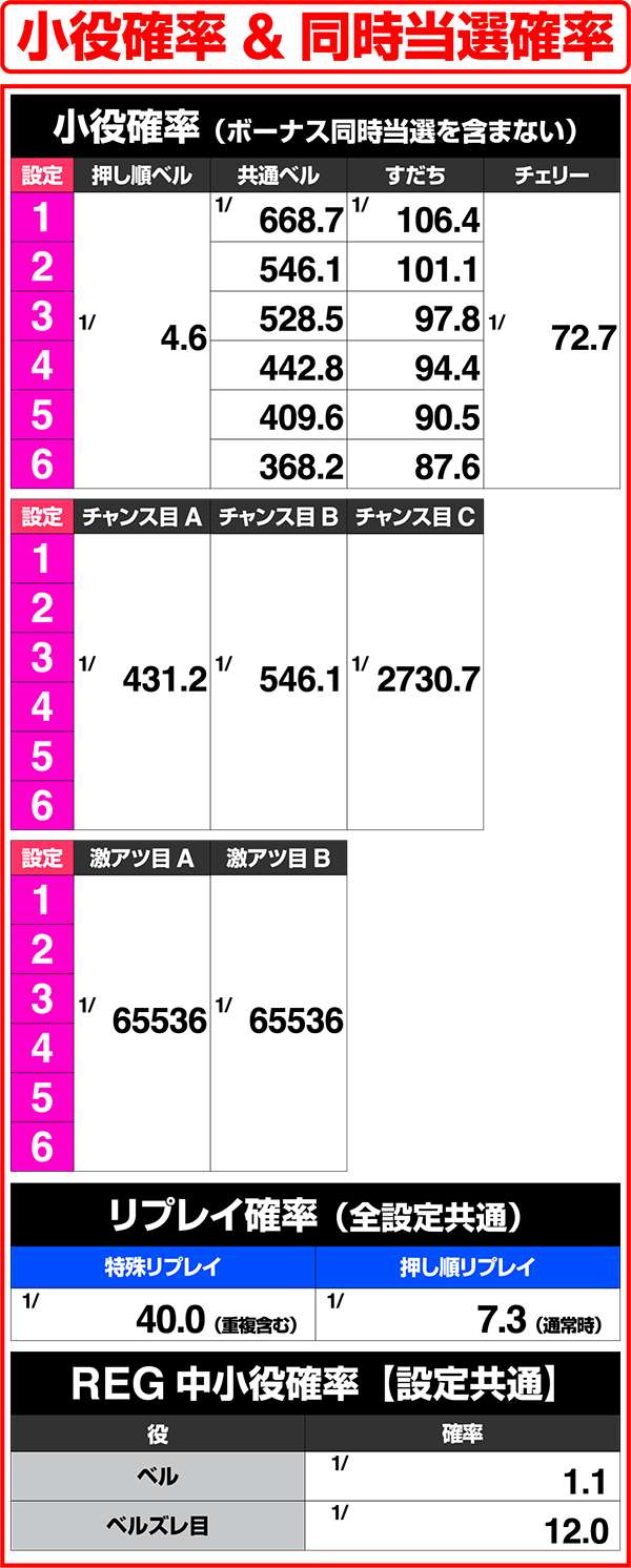 小役確率・各種当選期待度