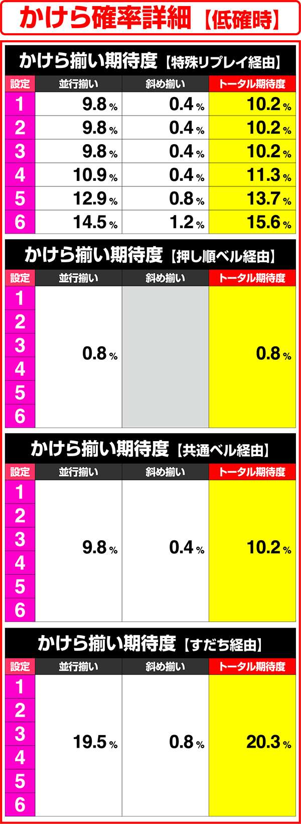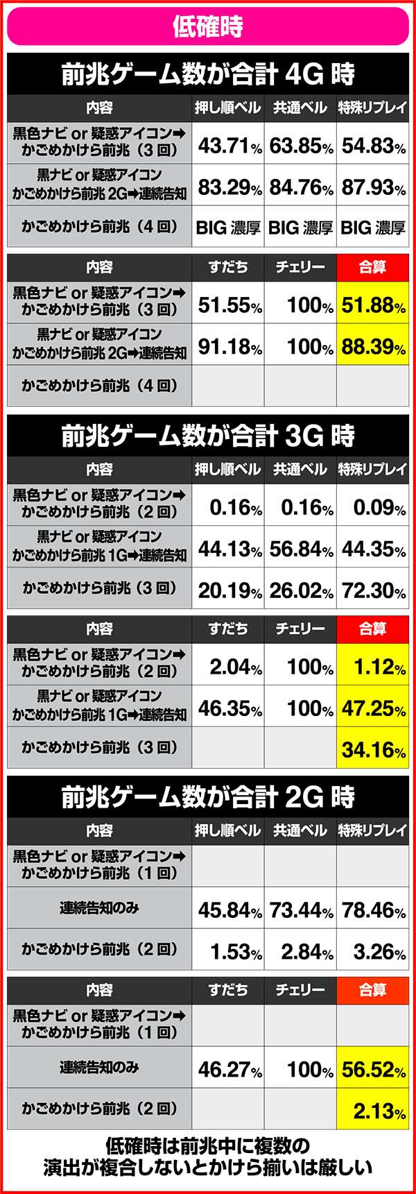 状態別・かけら確率詳細(低確時)