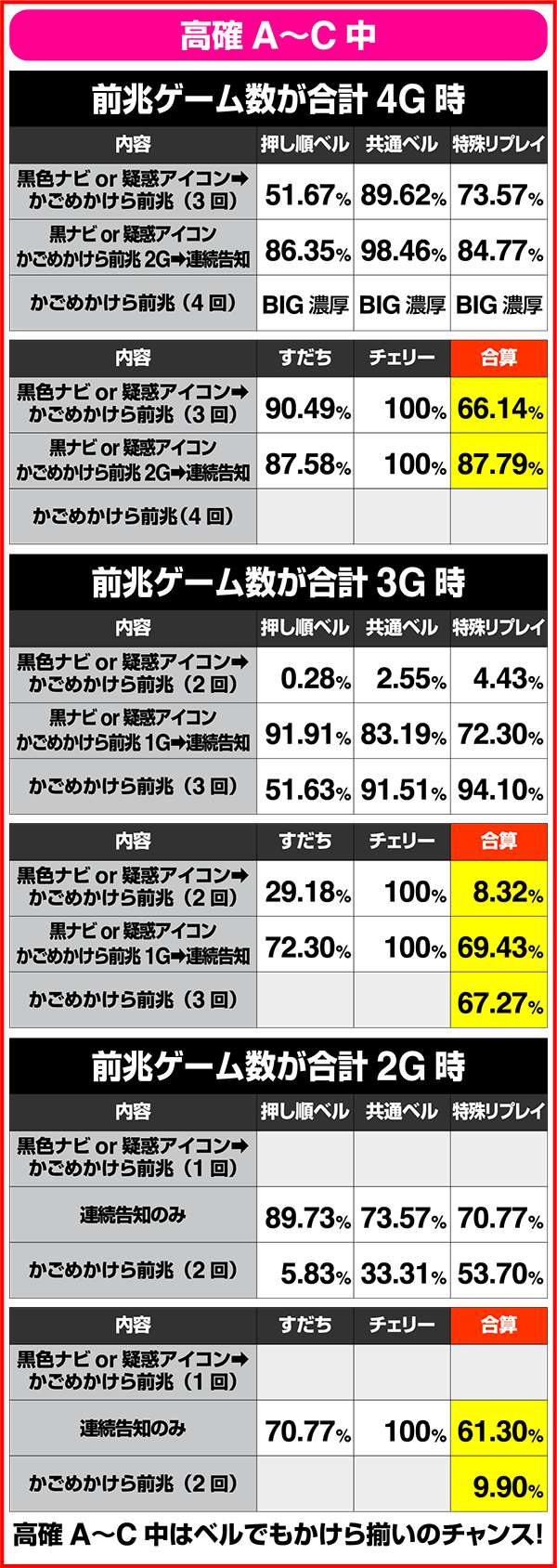 状態別・かけら確率詳細(高確A〜C時)