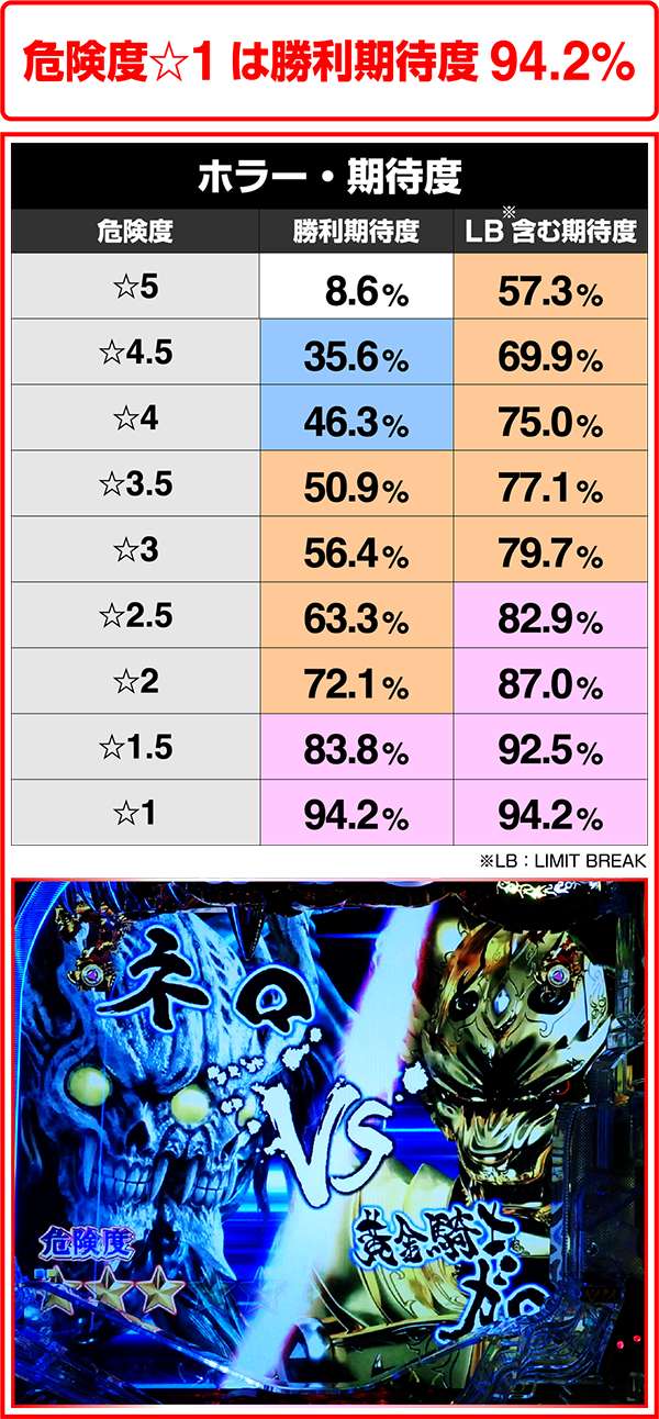 ホラーは危険度が低いほどアツく、危険度☆5でもLIMIT BREAKを含む期待度は50%を超える。