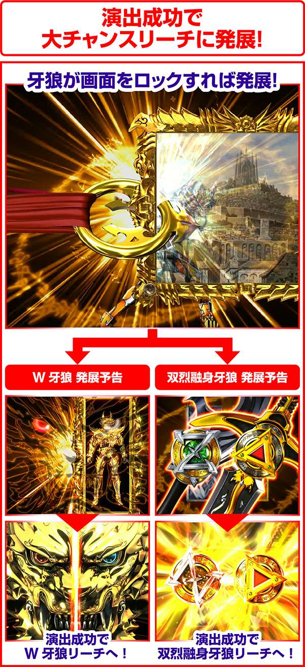 牙狼連続予告は擬似連時の牙狼の形態が、双烈融身牙狼だと大チャンスとなる。