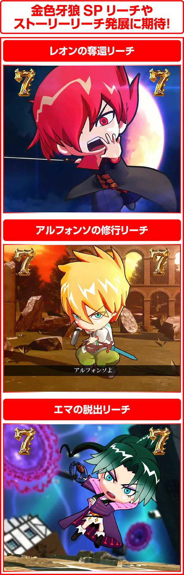 シリーズ初となるアニメ作品をモチーフとした牙狼が登場! 確変突入率は65%で、次回まで電サポが継続するタイプ。 時短は最大100回転となり、16R時の獲得出玉は約1800個と高い出玉性能を持つ。 フェイスオブガロからハウリングオブガロへと2段階に変形する役モノやセルタッチで描かれる演出など、今までの牙狼シリーズとはひと味違う面白さが盛りだくさん! |