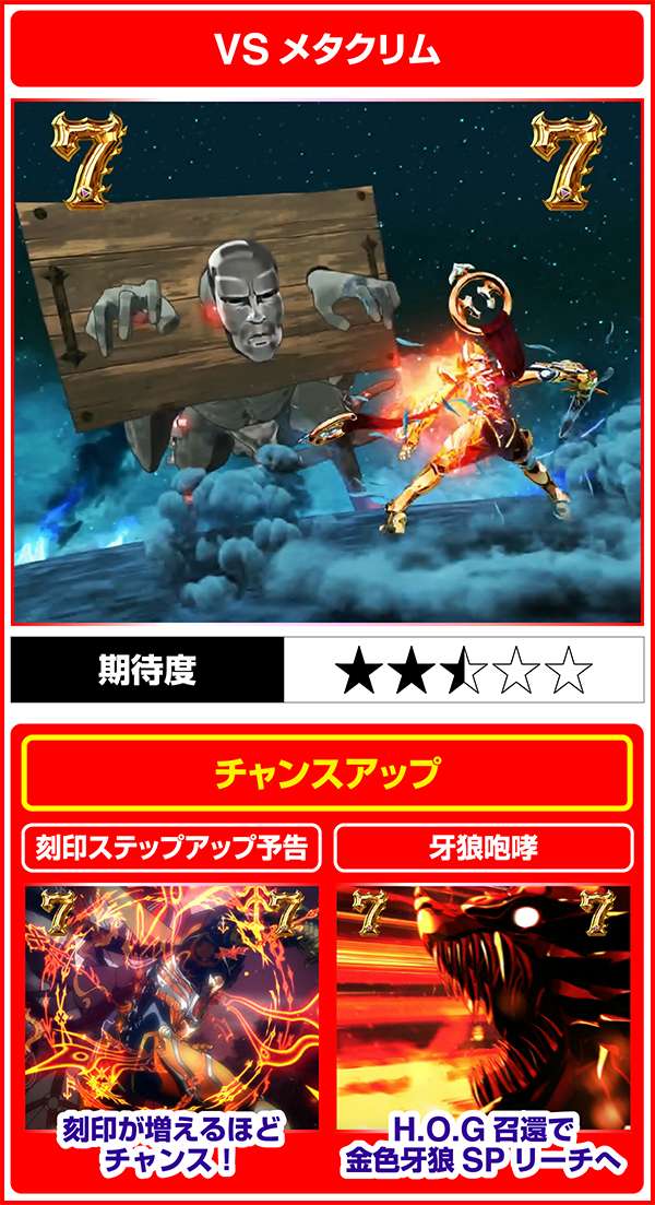 直当りの期待度は低めなだけに、金色牙狼SPリーチへの発展を願おう!