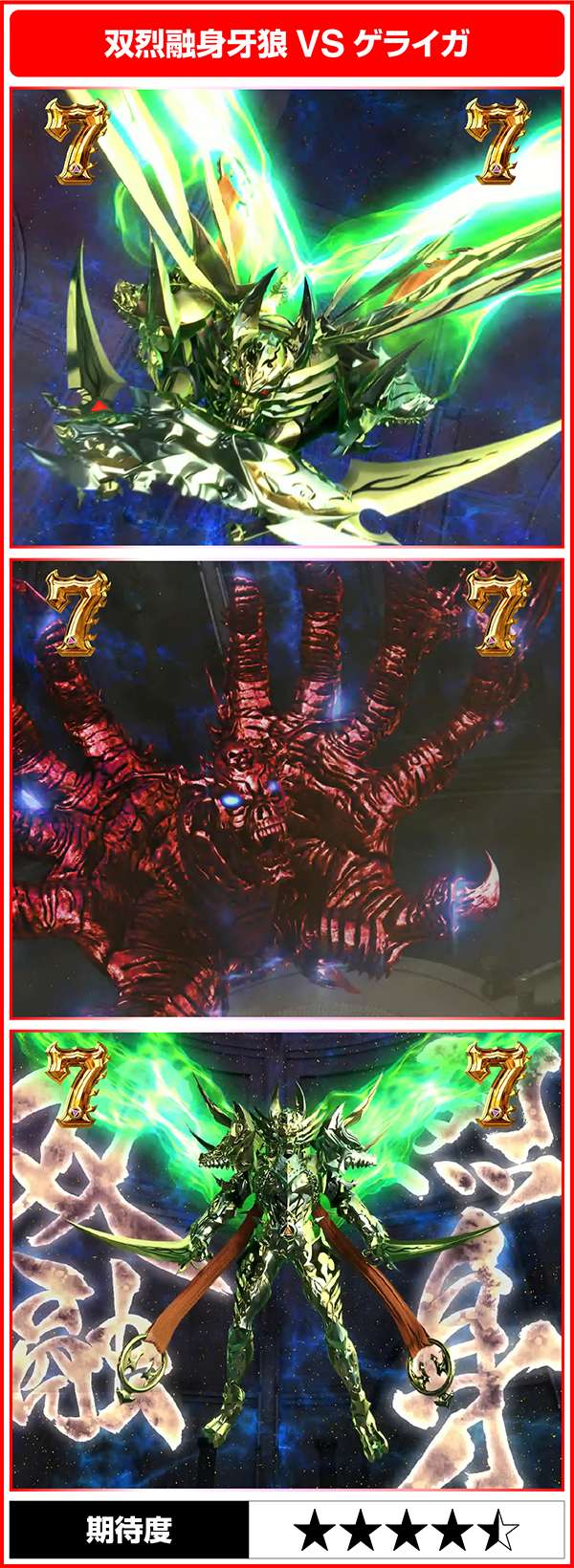 VSブラッドムーンやVSグロンドなら大チャンス、双烈融身牙狼が戦うVSゲライガは激アツだ!