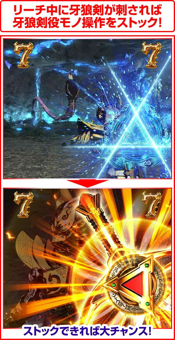 SPリーチ中だけでなく、変動中にも獲得する可能性あり。またストックするのが牙狼剣でなく牙狼斬馬剣ならば…!?