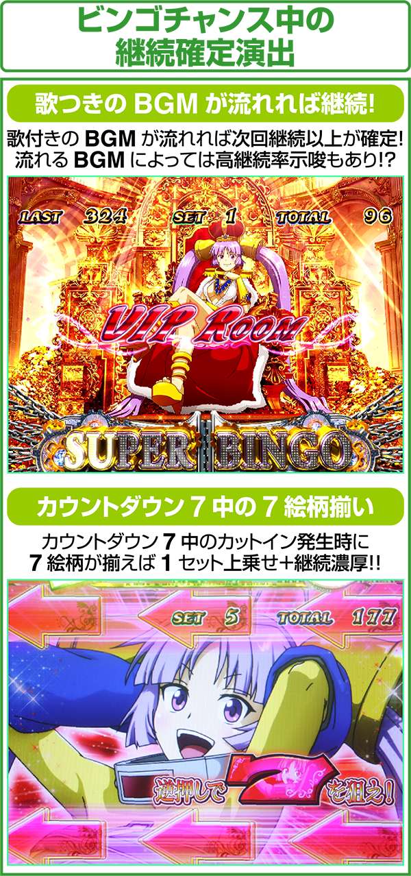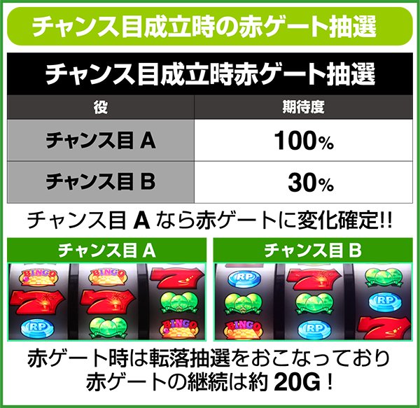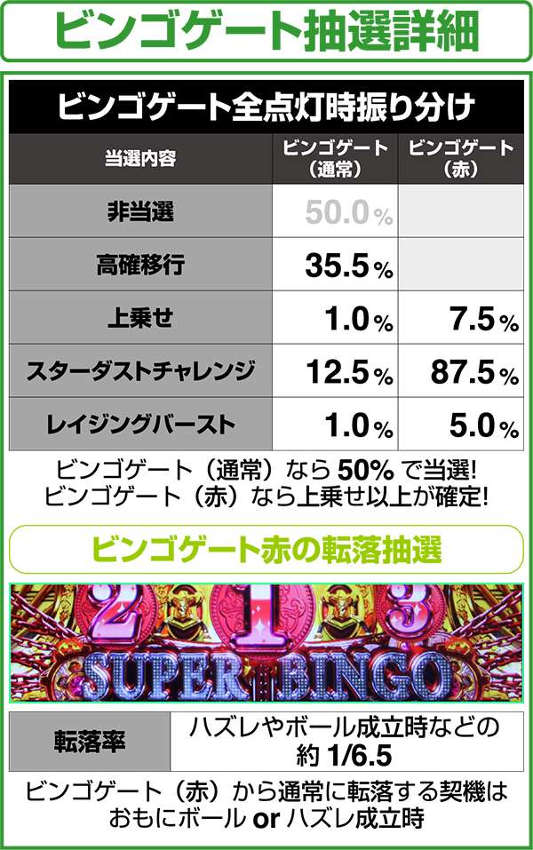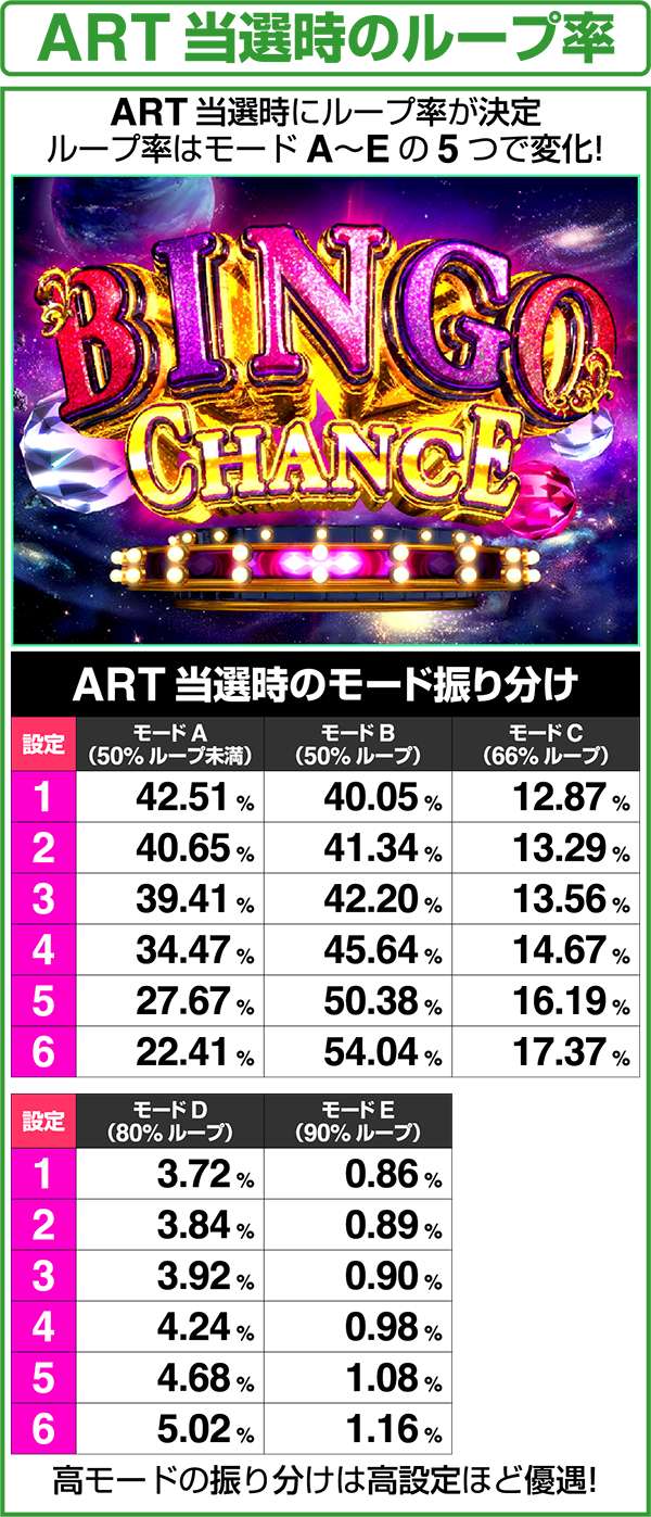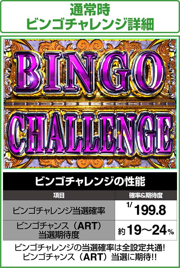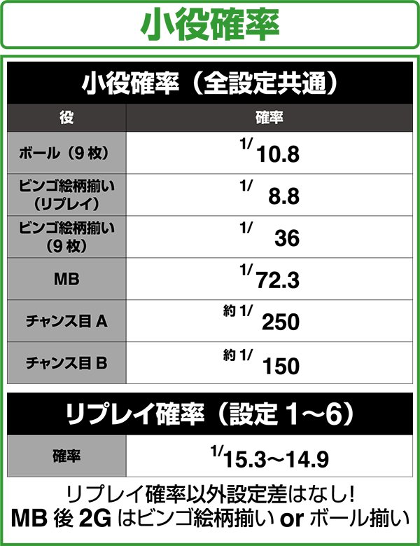 また、リプレイ成立時にビンゴリプレイ揃いへ変換する割合は、低確時なら20%、高確時は40%となっている。