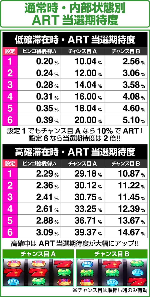 解析情報通常時 > ボーナス当選関連 > 内部状態別ART当選期待度を更新しました