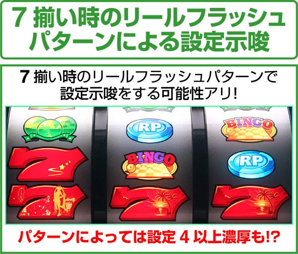 7揃い時のリールフラッシュパターンによる設定示唆