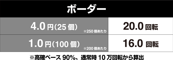 ※高確ベース90%、通常時10万回転から算出