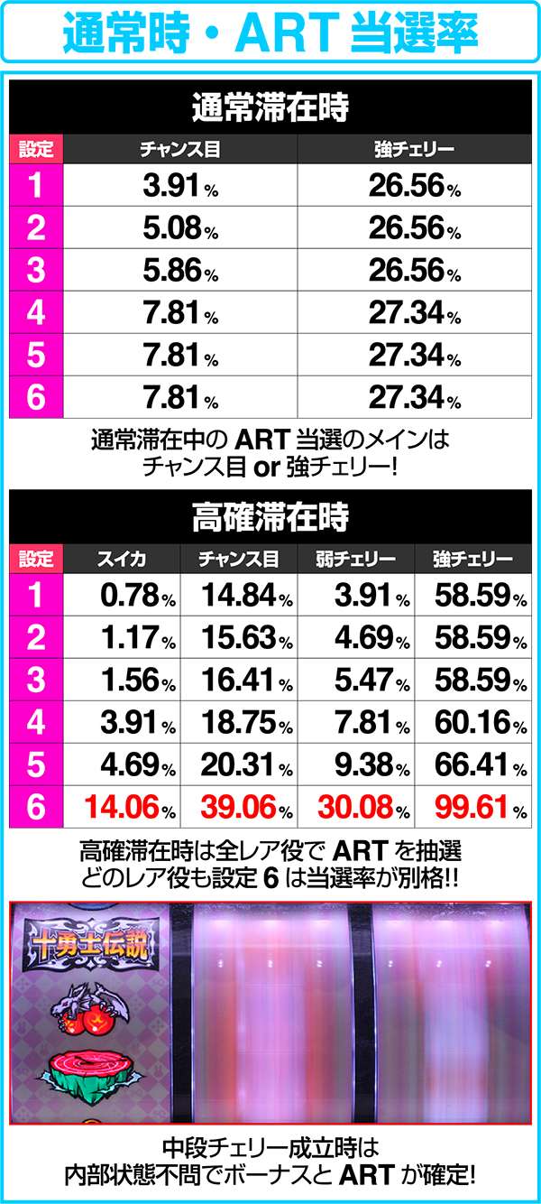 設定変更時は50%(全設定共通)で高確へと移行する。