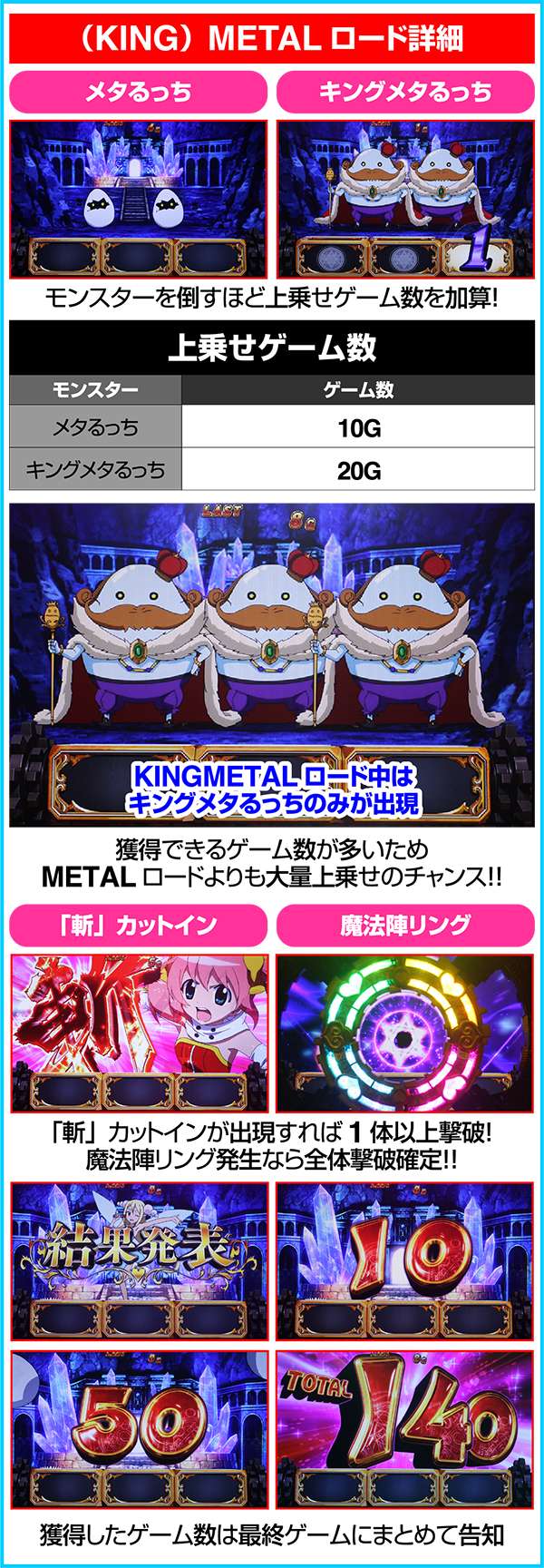 (KING)メタルロード中のストック内容はゲーム数ではなく、リール演出。モンスターを1体撃破すれば最低でもリール演出を1つストックする。