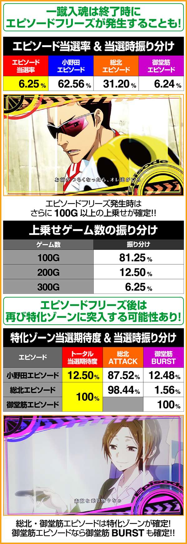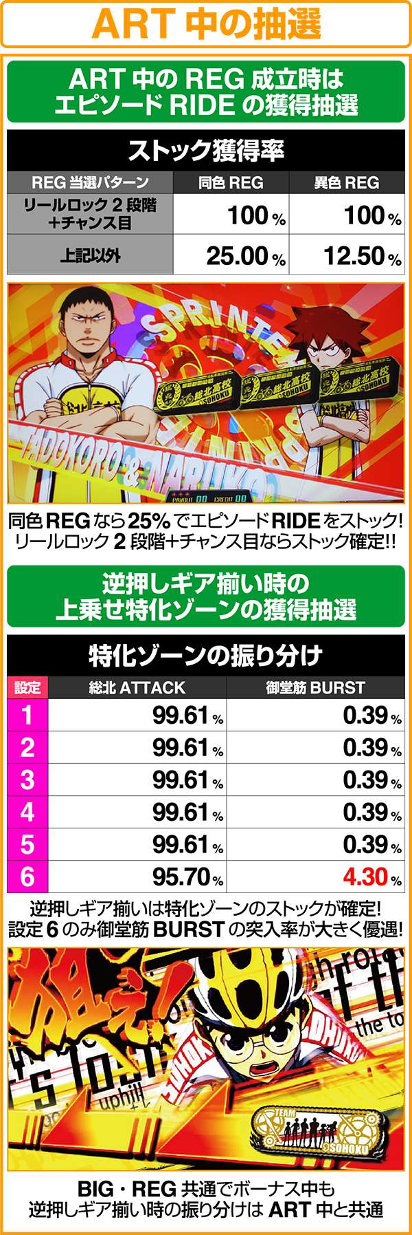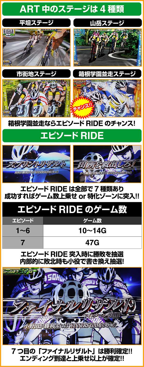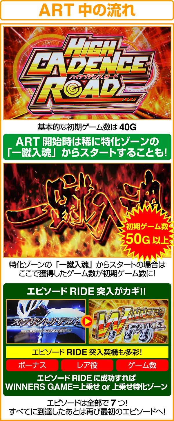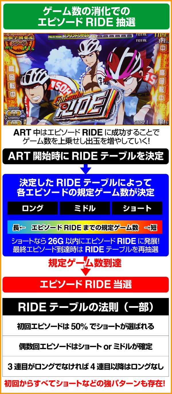 総北チャンス中は毎ゲーム、ARTの抽選をおこなっており、当選後はエピソードRIDEの抽選をおこなう。