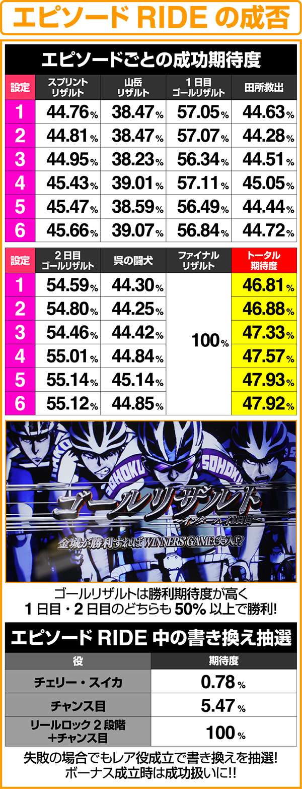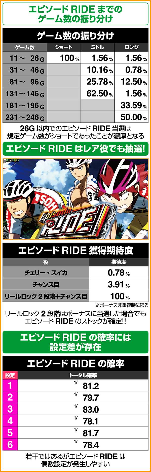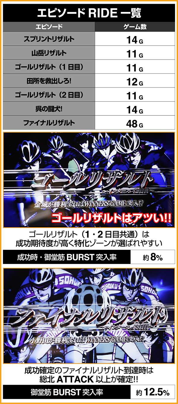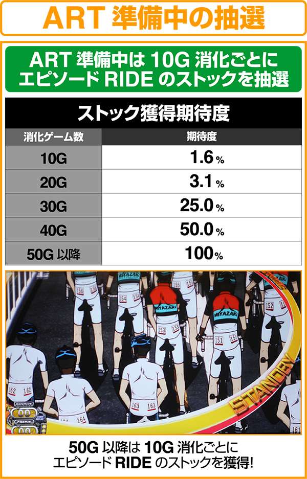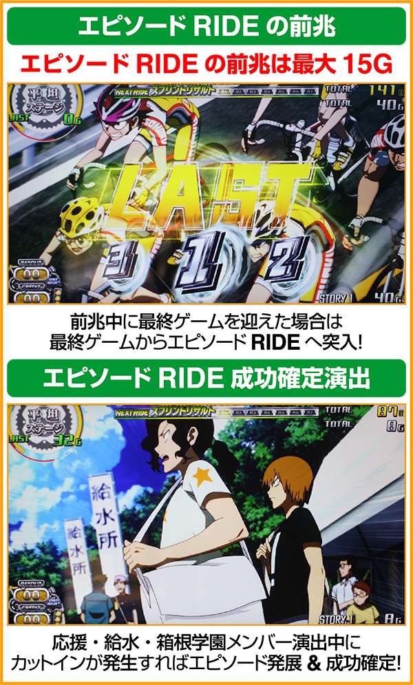 総北チャンス中は毎ゲーム、ARTの抽選をおこなっており、当選後はエピソードRIDEの抽選をおこなう。