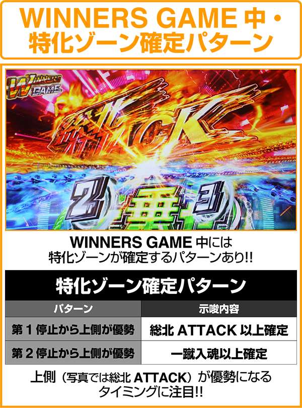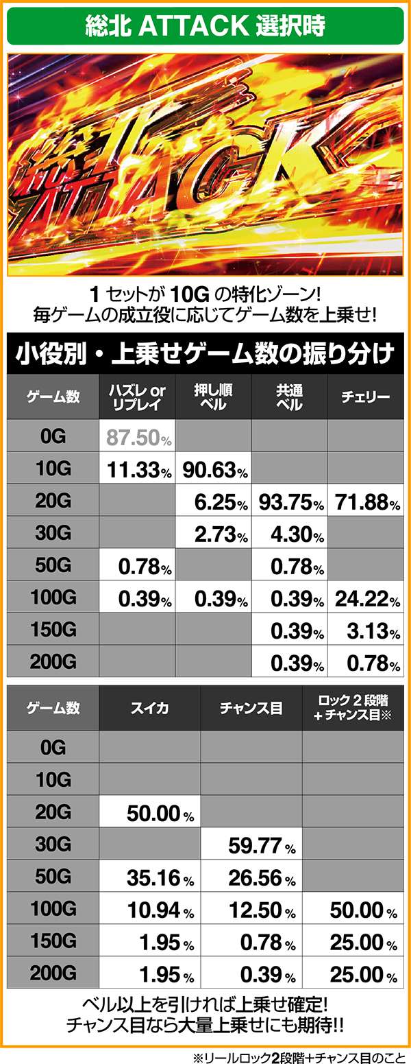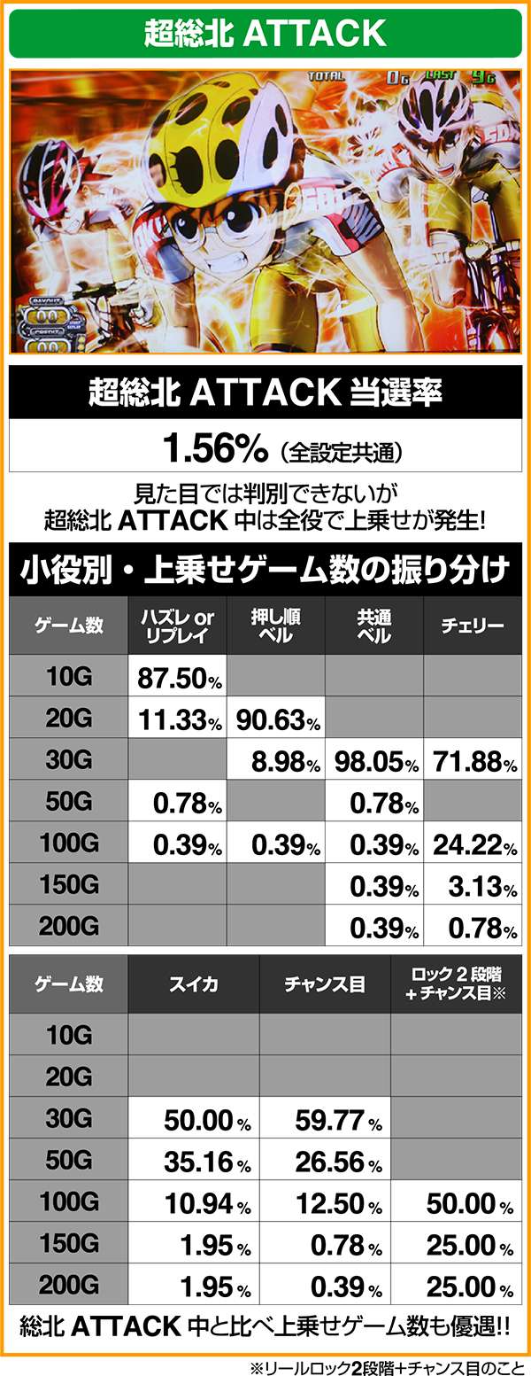 ただし、ART中やボーナス中に総北ATTACKのストックを獲得して潜伏していた場合はストックを消費したタイミングで超総北ATTACKへの突入を再抽選する。