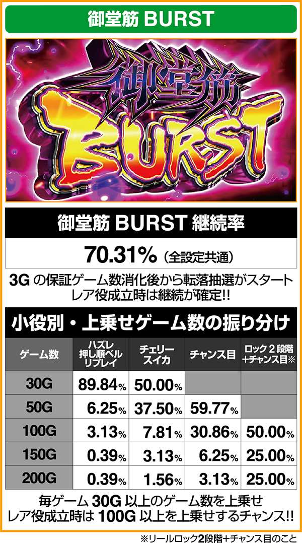 ゴールリザルトクリア時は上乗せ特化ゾーンが選ばれやすく、御堂筋BURSTも約8%存在。ファイナルリザルト到達時は上乗せ特化ゾーンが確定、さらに御堂筋BURSTも約12.5%存在と大量上乗せの大チャンスとなっている。
