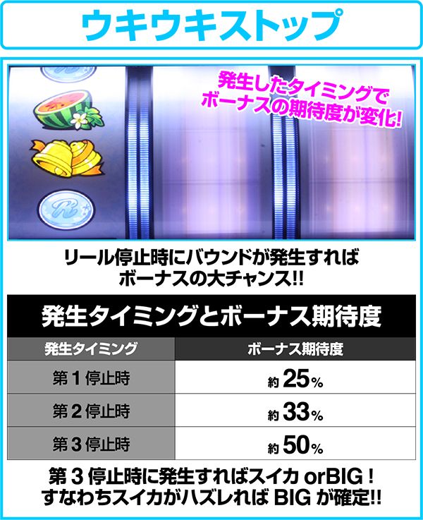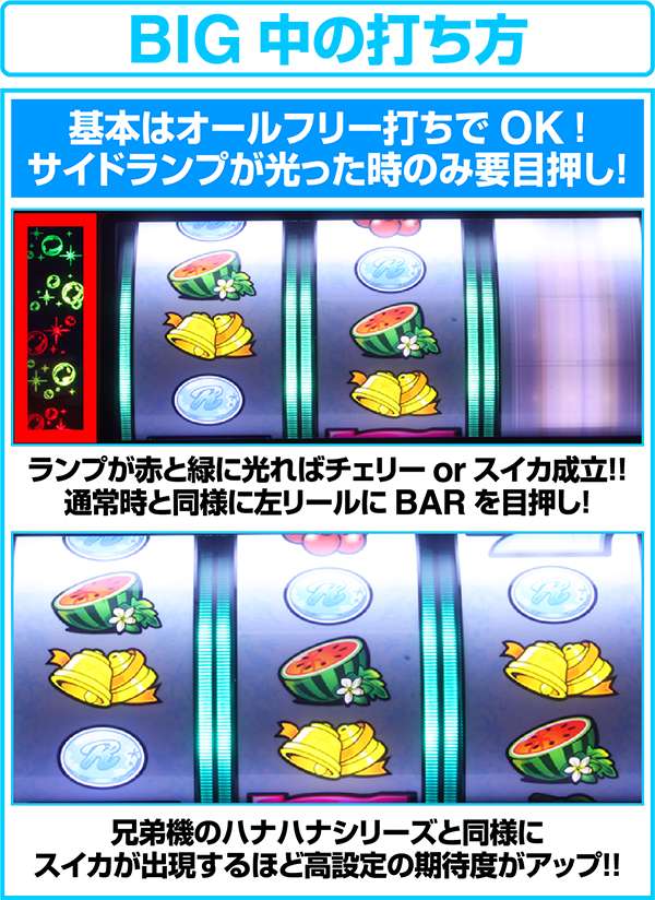 また、スイカは中・右リールで取りこぼす可能性があるため注意しておきたい。