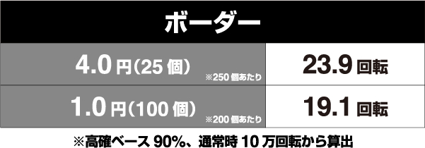 ※高確ベース90%、通常時10万回転から算出
