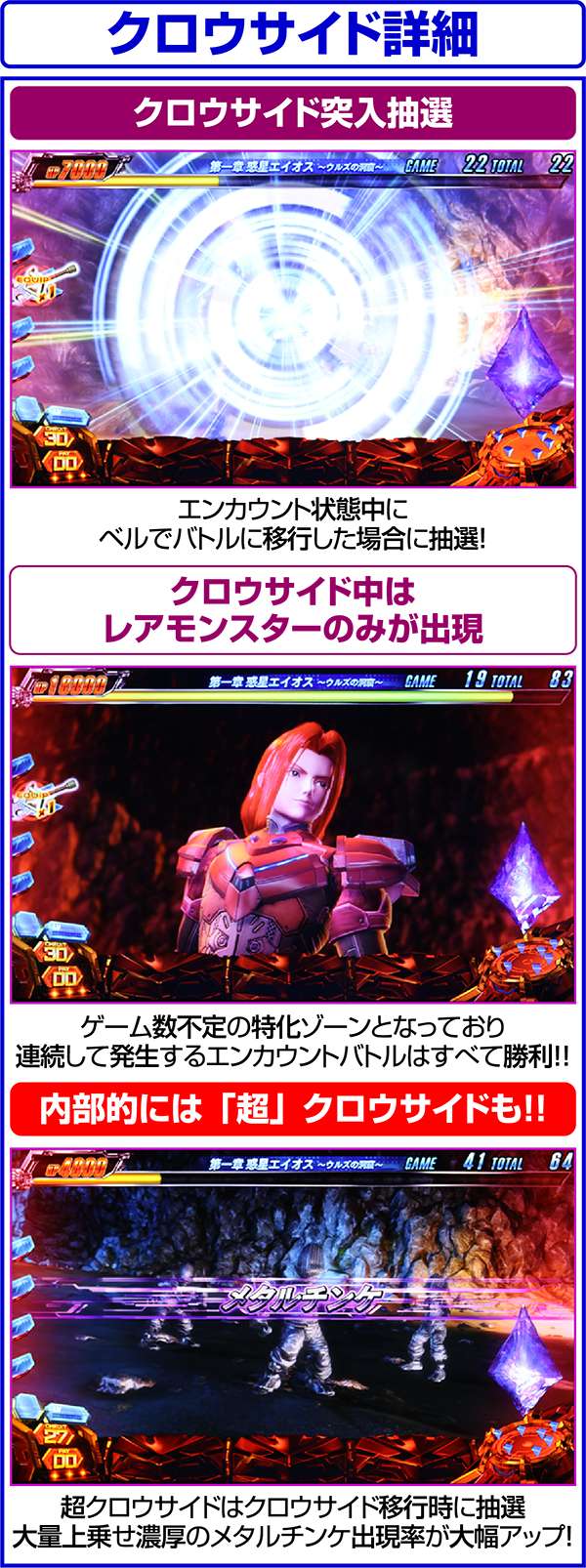 ちなみに、クロウサイド突入時以外でクロウサイド中にファントムソルジャーが出現した場合は、ボーナス確定となる。