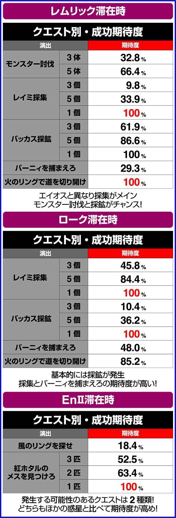 また、「バーニィを捕まえろ」と「炎のリングで道を切り開け」は、どの惑星で発生しても比較的、期待度が高めとなっている。