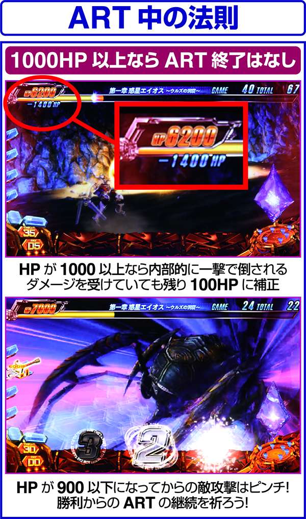 ARTは基本的にHPの増減によって継続するが、セーフゾーン中のボーナス成立時のみ、HPではなくセーフゾーンのゲーム数を5G上乗せする。