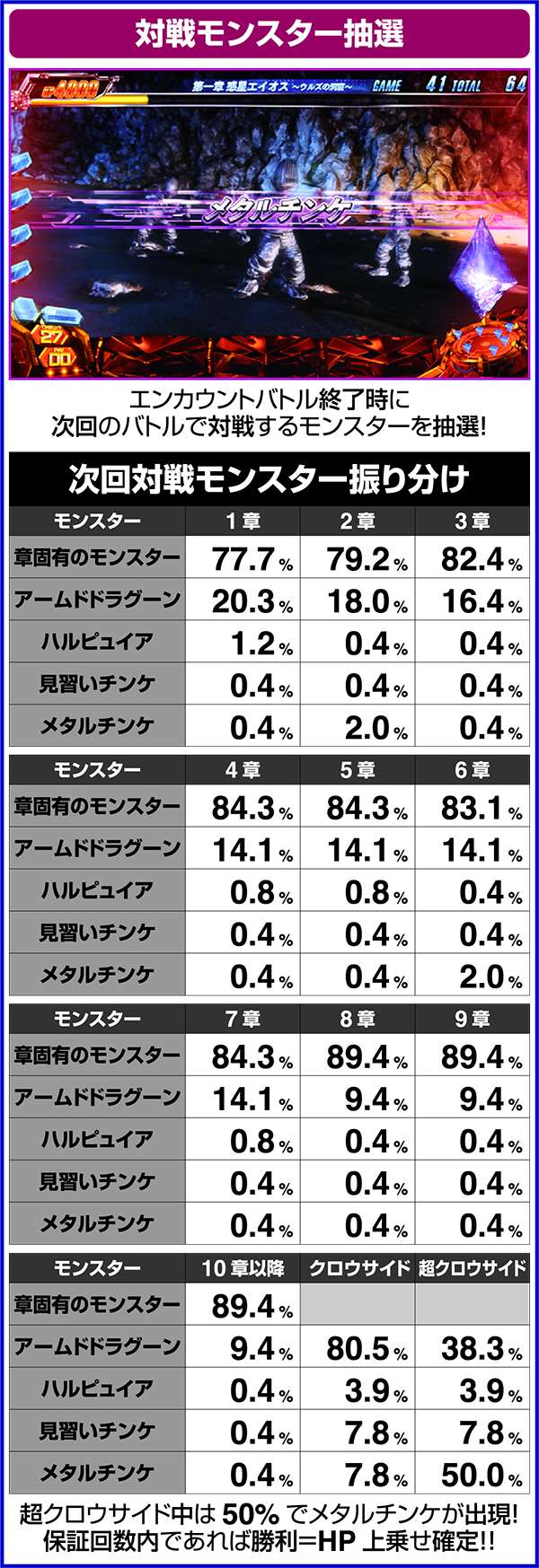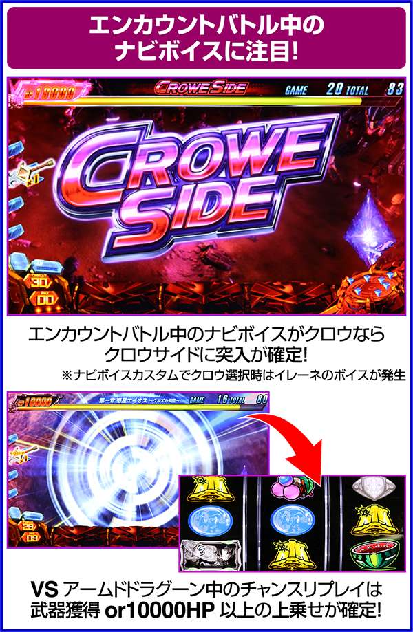 ちなみに、ART中の5章とクロウサイド後に突入するCZが勝利確定となるのは、CZのレベルが強制的に3となるからだ。