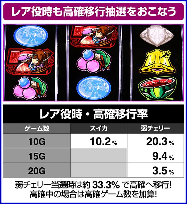 周期による高確とレア役による高確は別々のものとなっているが、両方が複合した場合でもさらに上位の状態への移行などは存在しない。