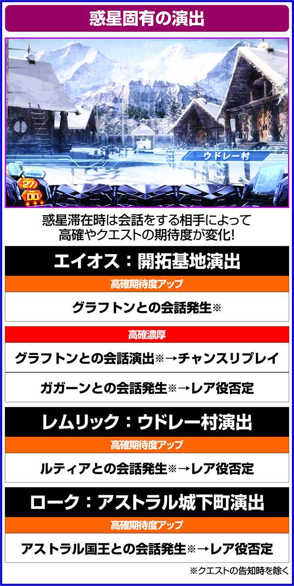 また、キャラによる設定示唆のほかに、惑星の出現によって滞在モードの示唆もおこなっている。
