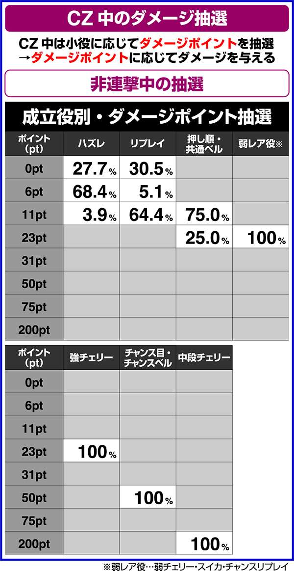 CZ中のボーナスは毎ゲームのダメージ結果に25ptを加算してダメージを算出。
