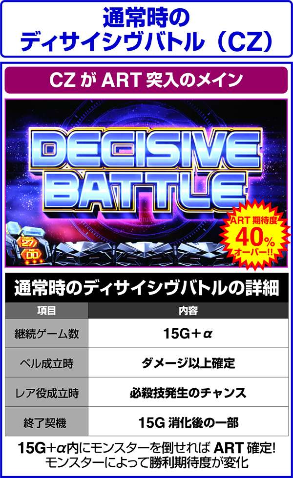 ART中のディサイシヴバトルは対戦モンスターこそ違えども、仕様は通常時のものとほぼ同じ。